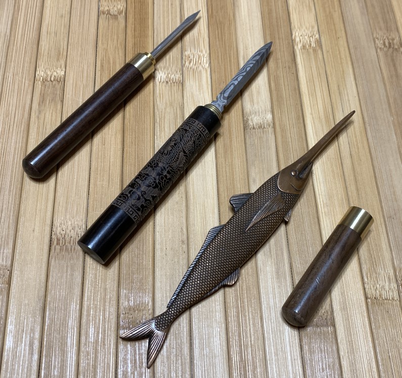 В Китае – это классические чайные ножи и шила с резными деревянными ручками. В дорогих наборах – с элементами нефрита, бронзы или слоновой кости.
